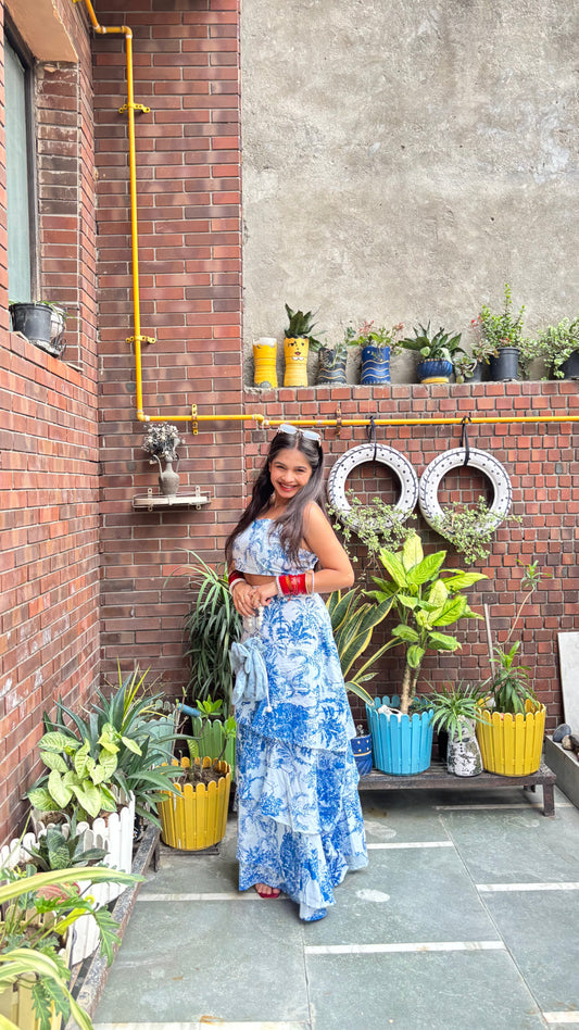 Dior Print Layer Skirt With Strapped Bustier Set
