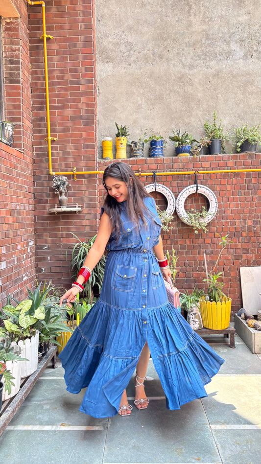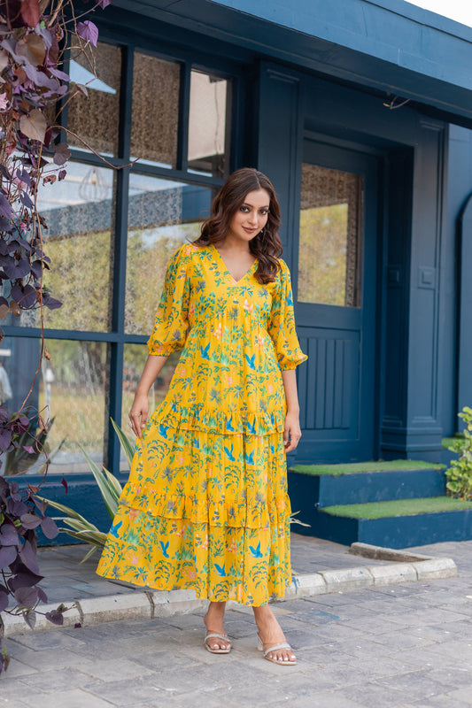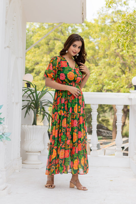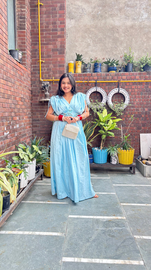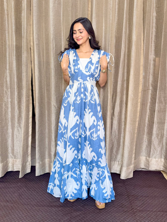 Shoulder Pull-Up Deep V-Neck Maxi Dress