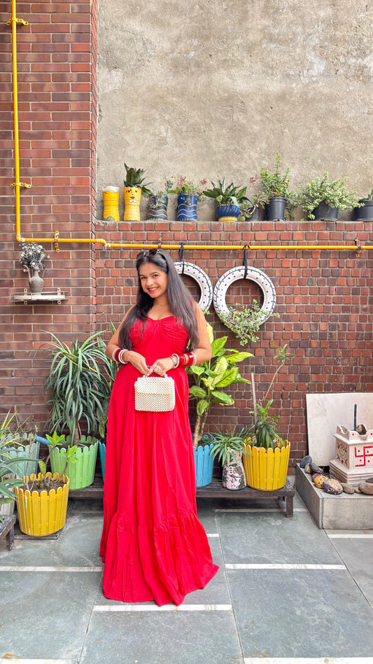Hot Red Shoulder Tie-Knot Strappy Maxi