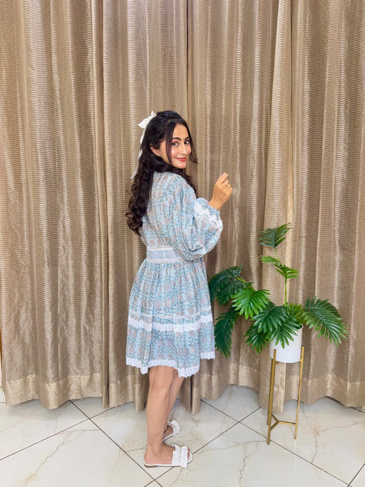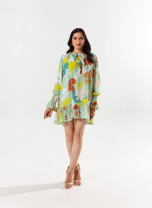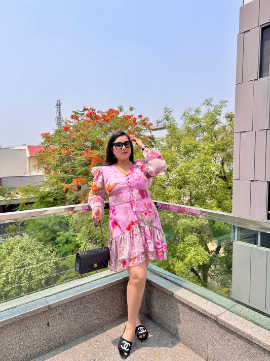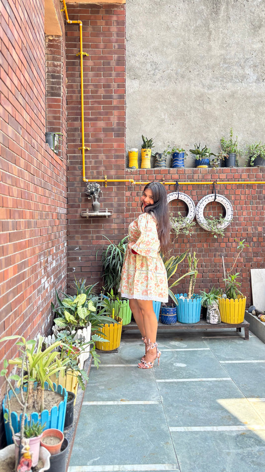 Autumn Flower Print Chanderi Buttoned Shift Dress